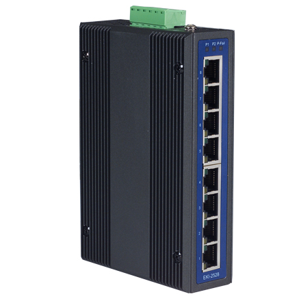 The EKI-2525/2528 supports a Fast Ethernet solution. The power is a 12 ~ 48 VDC redundant input design, and is secured with a double protection mechanism: Power Polarity Reverse Protect and an Overload Current Resetable Fuse. The former tolerates reverse power wiring while the later secures the system from overload currents. As the power supply turns normal, EKI-2525/2528 will automatically get back to work. Each port of EKI-2525/2528 has 2 LED’s to show the link status transmission speed and collision status. It also provides a relay output for an event alarm. In the event of a power failure, the built-in LED will activate the alarm to notify administrators. Engineers can simply verify the hardware status by checking the LED, and have troubleshooting easy and quick. EKI-2525/2528 comes with compact metal housing that rates IP30 to help against from dusty industrial environments.