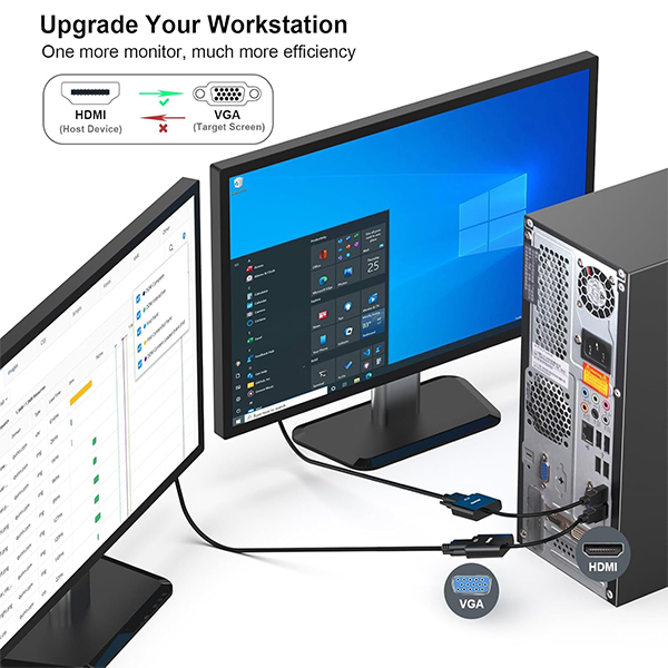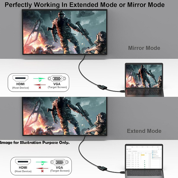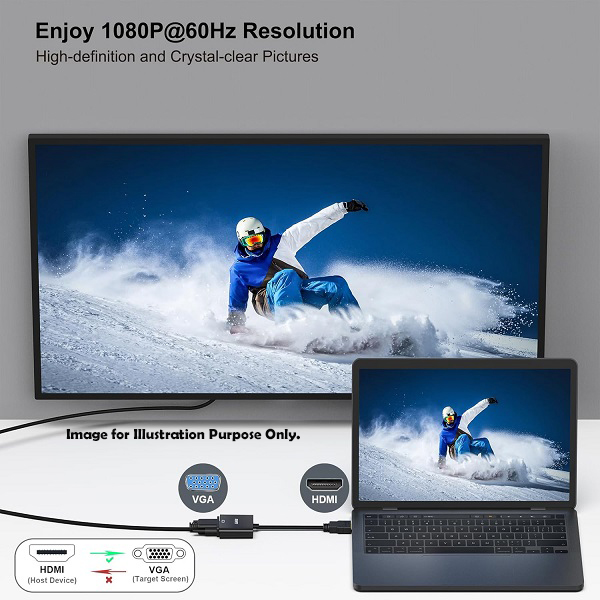 -Resolution Support: 1920x1080@60Hz(1080p FHD), 720p, 1600x1200, 1280x1024 for HD monitors/projectors