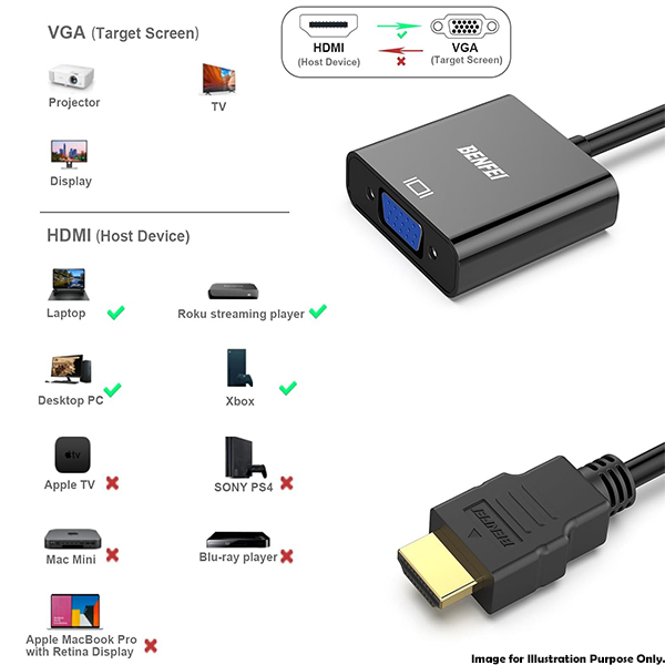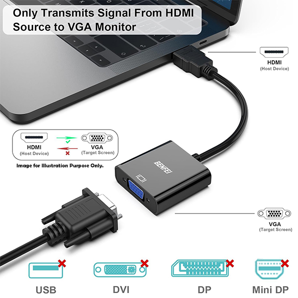 -This adapter is NOT Bi-directional, it is used to connect the HDMI source to the VGA Display.
