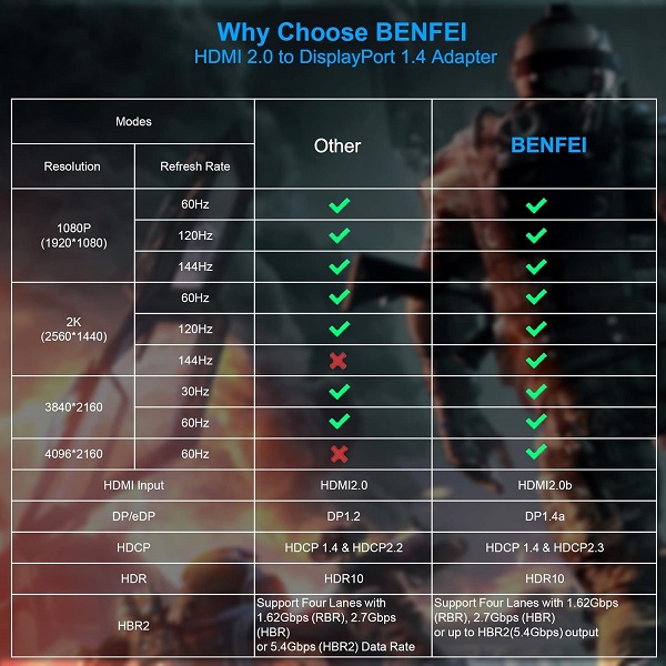 -Resolution Support: 3840*2160@60Hz, including 2K@144Hz, 2K@120Hz, 1080P@165Hz 1080P@144Hz or 1080P@120Hz