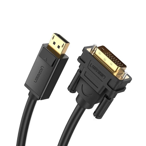 UGreen 10221 DisplayPort Male To DVI-D (24+1) Male 2m Cable With Gold-Plated Connectors, Release Button And Supports Up To 1080P@60Hz - Black Colour
