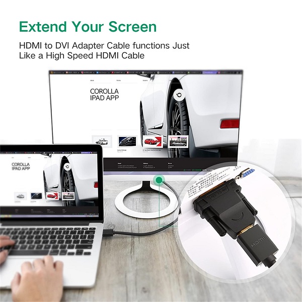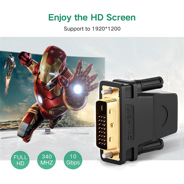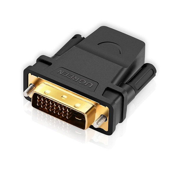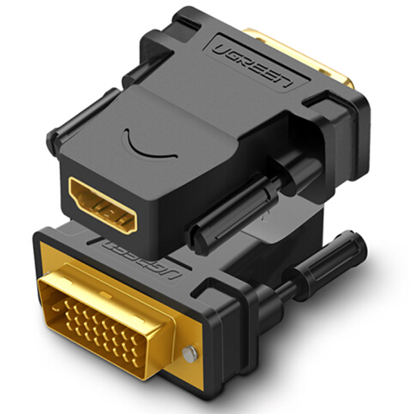 UGreen 20124 DVI-D (24+1) Male To HDMI Female Adapter With Gold-Plated Connectors, Supports 1080P@60Hz Resolution And Bi-Directional Function - Black Colour