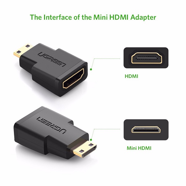 UGreen 20101 Mini HDMI Male To HDMI Female V2.0 Adapter With Gold-Plated Connector And Supports Resolution Up To 4K@60Hz - Black Colour