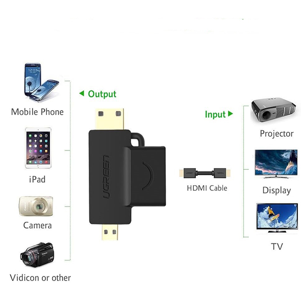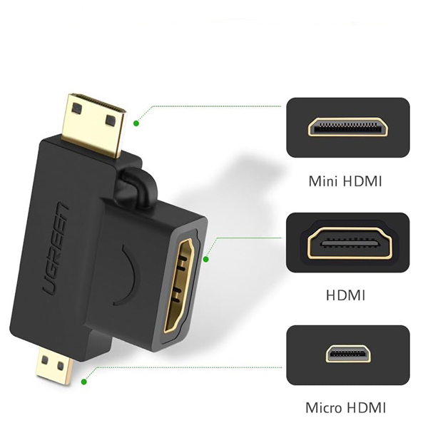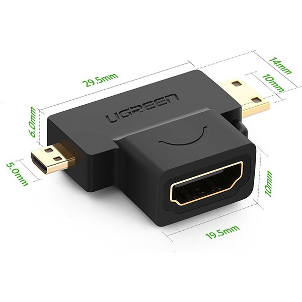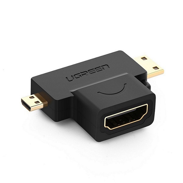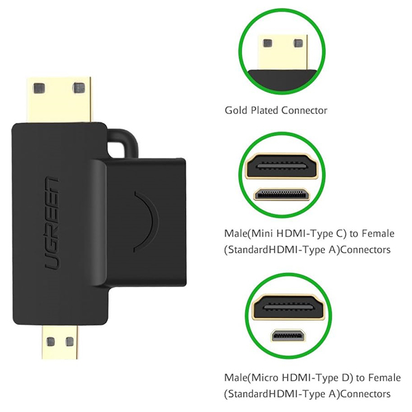 UGreen 20144 2-in-1 Micro + Mini HDMI Male To HDMI Female Adapter With Gold-Plated Connectors And Supports Resolution Up To 4K@60Hz - Black Colour