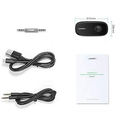UGreen 70304 3.5mm Bluetooth V5.1 Audio Receiver With AptX And Detachable 3.5mm Adapter With Built-In Microphone - Black Colour