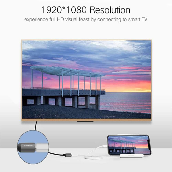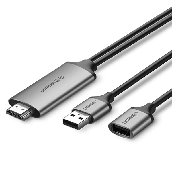 UGreen 50291 USB-A 2.0 Female To HDMI Male Digital AV Mobile Adapter With USB-A Connection For Additional 5V Power Support And Nickle-Plated Connectors And Supports Resolution Up To 1080P@60Hz - Grey Colour