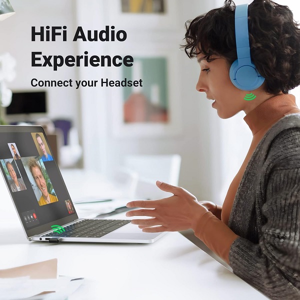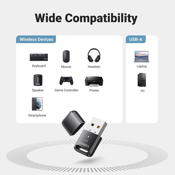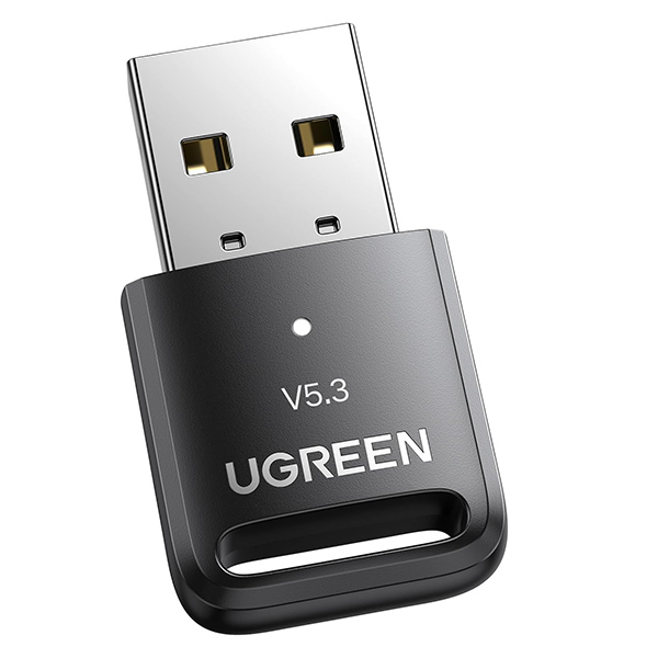 UGreen 90225 Bluetooth V5.3 Mini USB Adapter With LED Indicator, Low Latency And Up To 20m (Max) Coverage Distance - With A2DP Technology Support - Black Colour