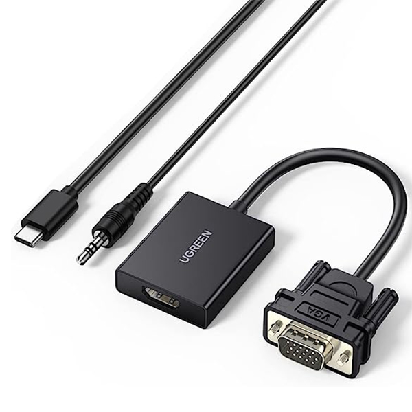 UGreen 50945 VGA Male To HDMI Female Adapter With 3.5mm Audio And USB-C Female Power Port And Support Resolution Up To 1080P@60Hz - Black Colour