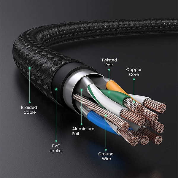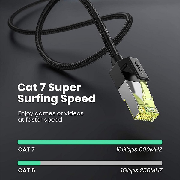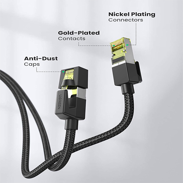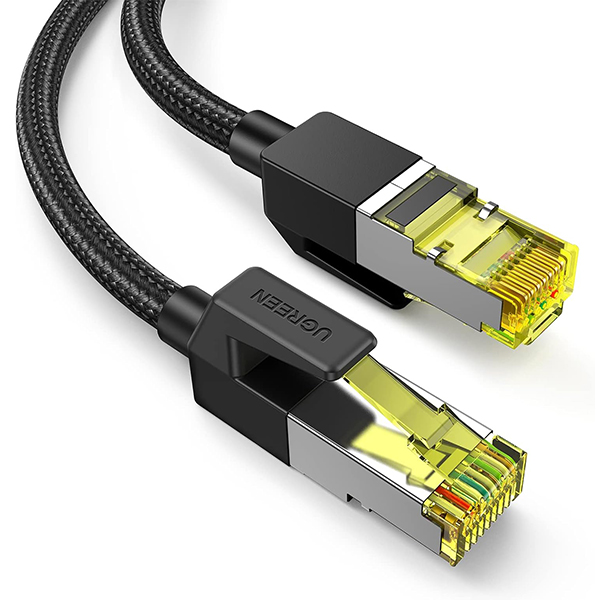 UGreen 30793 CAT7 FTP Male To Male Ethernet Round LAN 20m Cable With Gold-Plated Pure-Copper Contacts And Supports Data Transmission Up To 10Gbps - Black Colour