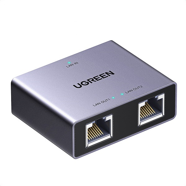 UGreen 45311 RJ45 1-Port To 2-Ports Gigabit Ethernet Splitter Kit Supporting 1000Mbps (Max) High-Speed Transmissions With An 5V USB-C Power Port For Extra Power - Grey Colour