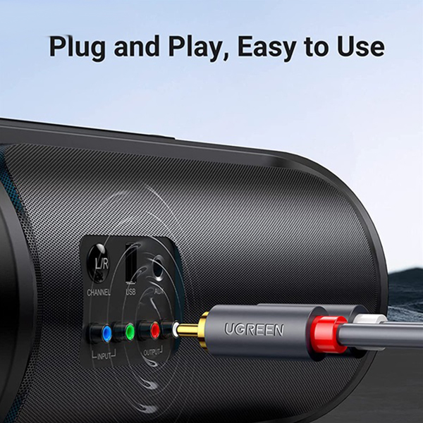 UGreen 10518 2RCA Male To Male Round 2m Stereo Cable With Gold-Plated Connectors And Delivers Smooth And Crisp Sound - Grey Colour