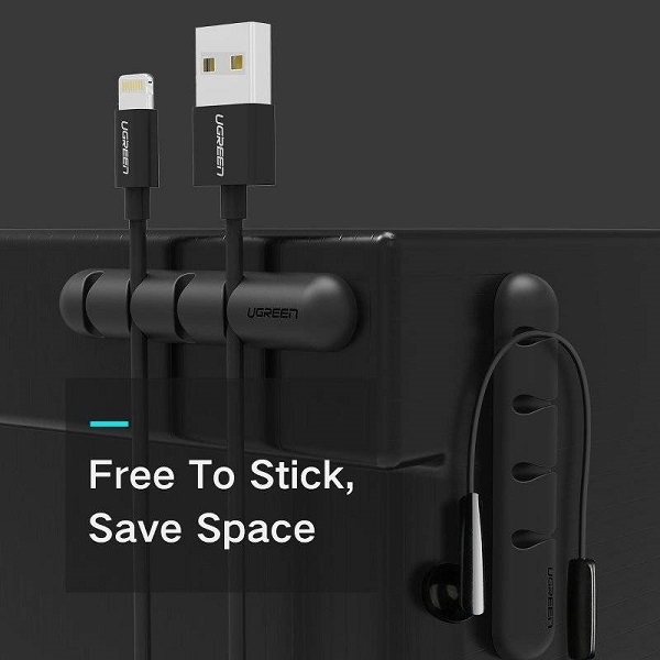 UGreen 30762 Desktop Cable Management 2PCS/4SLOT Suitable For Cables Less Than 5mm Diameter And Strong Adhesive - Black Colour
