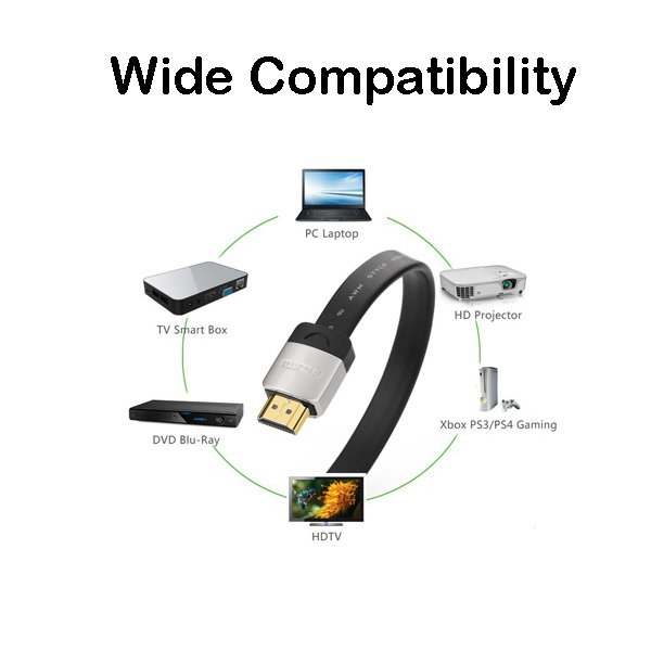 UGreen 10263 HDMI V1.4 Male To Male Zinc-Alloy Flat 5m Cable With Gold-Plated Connectors And Supports Resolution Up To 4K@30Hz - Black Colour