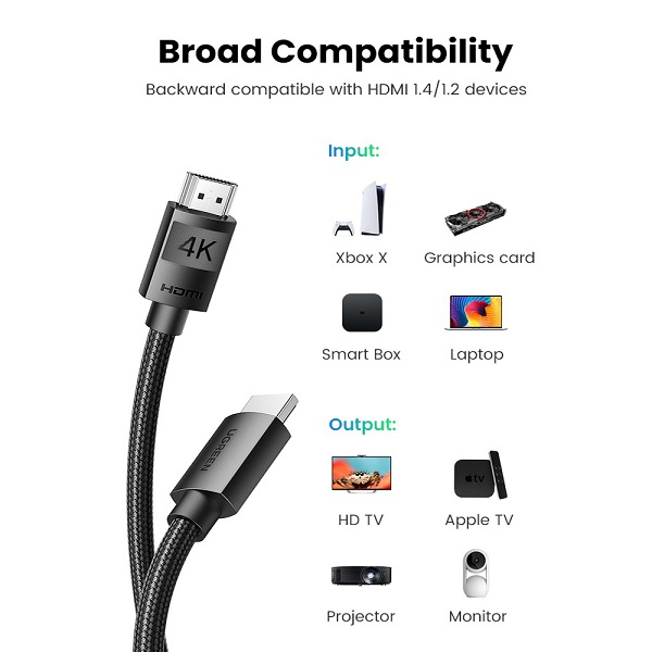 UGreen 40103 HDMI V2.0 Male To Male Braided 5m Cable With Nickle-Plated Connectors And Supports Resolution Up To 4K@60Hz - Black Colour