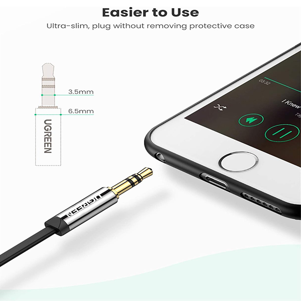 UGreen 10728 3.5mm Male To Male 90° Right Angle Flat Audio 3m Cable With Gold-Plated Connectors And Widely Compatible With 3.5mm Port Devices - Black Colour