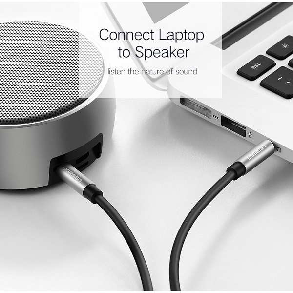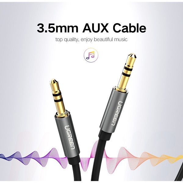 UGreen 10737 3.5mm Male To Male Round Audio 5m Cable With Gold-Plated Connectors And Widely Compatible With 3.5mm port devices - Black Colour