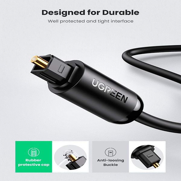 UGreen 70893 Toslink Fibre Optical Round Male To Male Audio 3m Cable With Metal Casing And Gold-Plated Connectors - Black Colour