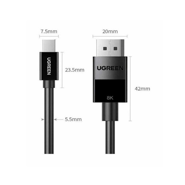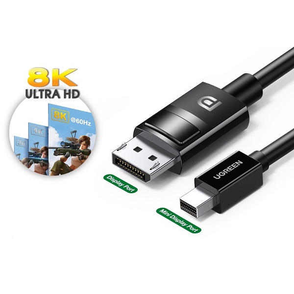 UGreen 80663 Mini DisplayPort Male To DisplayPort Male 1.5m Cable With Nickle-Plated Connectors And Supports Resolution Up To 8K@60Hz - Black Colour