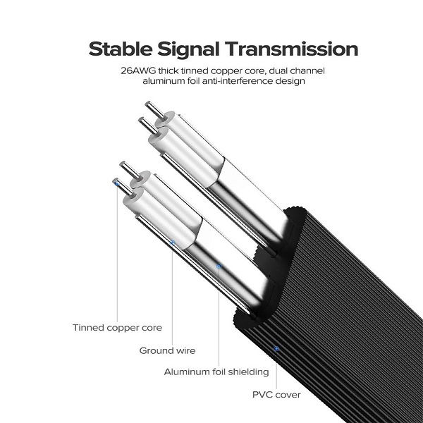 -Material: Tinned copper core+Ground wire+Aluminum foil shielding+PVC Cover