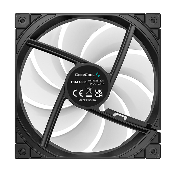 DeepCool FD14 A-RGB 140MM High Performance Hydro Bearing 4-Pin PWM Fan Outfitted With 8-Pin Connection In Frame To Daisy Chain FD Fans And Full-Coverage Corner Rubber Pads For Reduced Vibrations - Black Colour