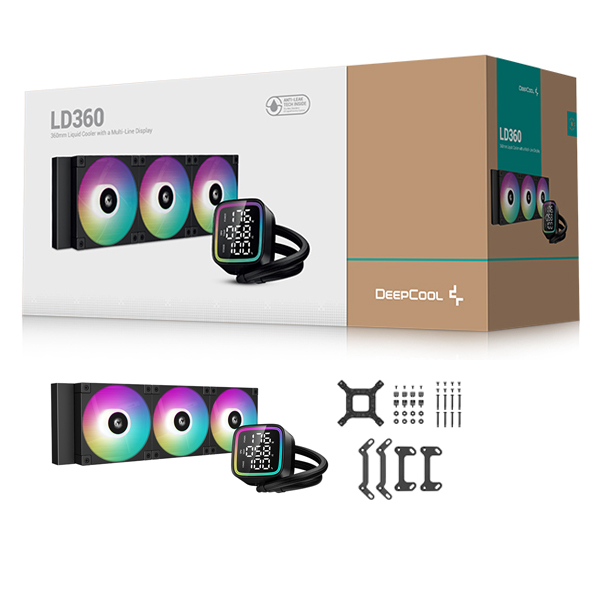 DeepCool LD360BK A-RGB All-In-One CPU Liquid Cooler With CPU Status Digital Display, Brand New 5th Gen Pump And 3X 120mm FD12 HB PWM Fans And Max.300W TDP - Black Colour