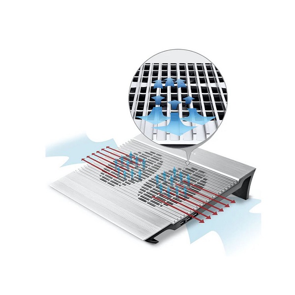 DeepCool N8 17" Notebook Cooler With Pure Aluminum Panel And Dual 140mm Fans - Silver Colour