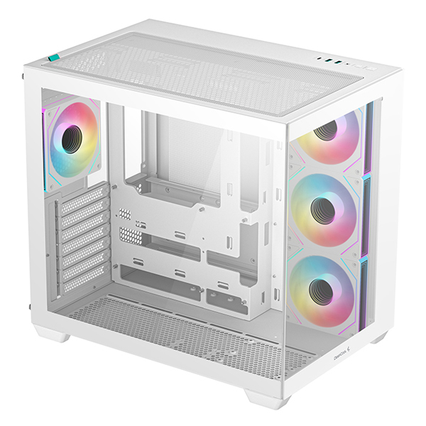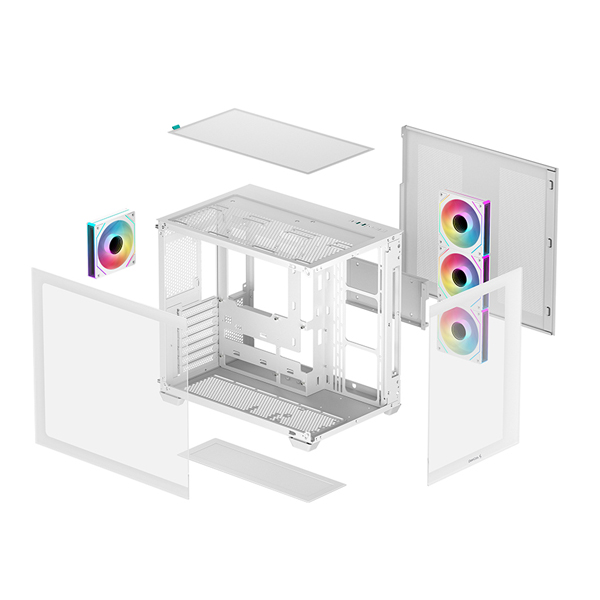 DeepCool CG530 Dual-Chamber Panoramic Scenic View Designed ATX Case With Front And Side Tempered Glass Panels, 4X Pre-Installed PWM ARGB Fans (Upto 10X Max) And Supporting 360mm Radiator Size* - White Colour