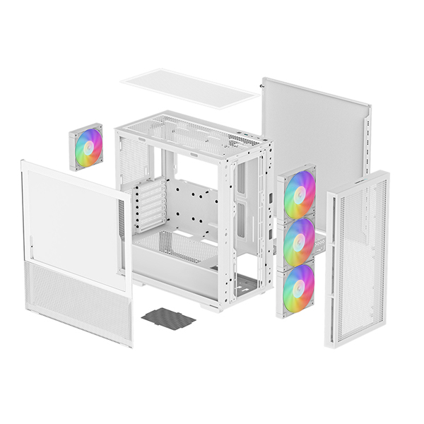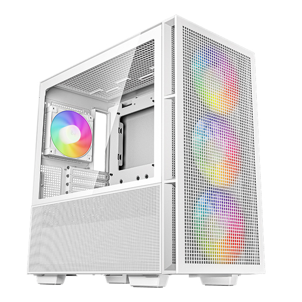 DeepCool CH560 White ATX Mesh Front Mid-Tower With 3X Front 140mm PWM A-RGB And 1X Rear 120mm A-RGB And Tempered Glass Side Panel - White Colour