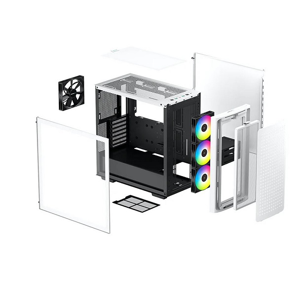 DeepCool CK560 E-ATX Mid-Tower Case With 3X 120mm ARGB Front Fans, 1X 140mm Rear Fan And Full-Sized Tempered Glass Panel - White Colour