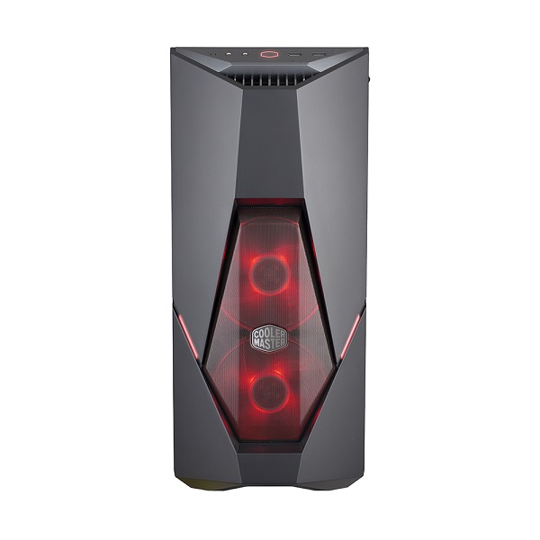 Cooler Master MasterBox K500L ATX Mid-Tower With Side Panel And LED Strip in Front Of Case And Two Red LED Fans Pre-Installed - Black Colour