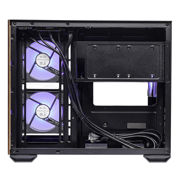 Cooler Master Elite 481 Wood Micro-ATX Case Featuring Compact Dual-Chamber, Natural Wood Front Panel and 270° Seamless Tempered Glass Side Panel – Black Colour