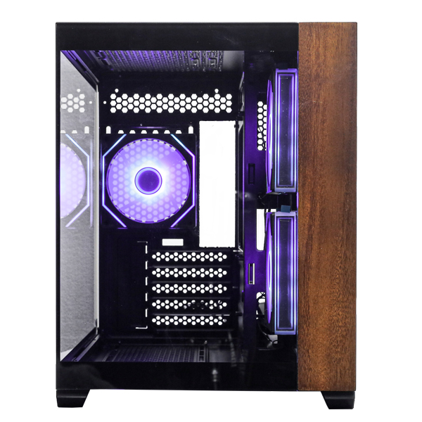 -Material: Tempered Glass + Wood (Front Panel), Tempered Glass (Side Panel (Left)), Steel (Side Panel (Right))