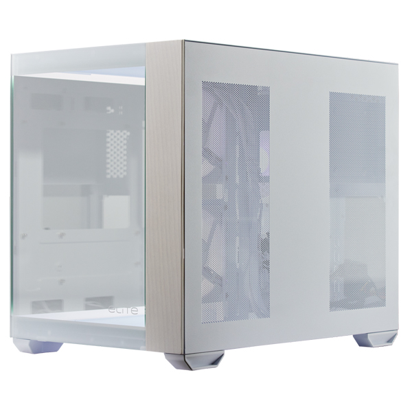 Cooler Master Elite 481 Wood Micro-ATX Case Featuring Compact Dual-Chamber, Natural Wood Front Panel and 270° Seamless Tempered Glass Side Panel – White Colour