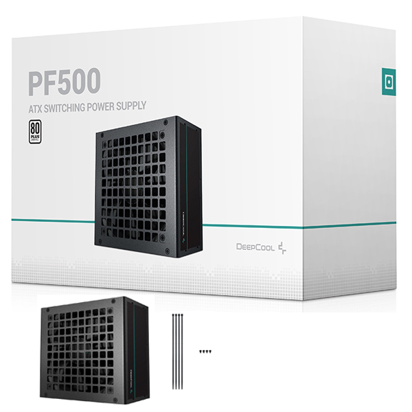 DeepCool PF500D-HA 500W 80+ White Certified (230V EU) ATX12V V2.4 Power Supply With 1X 120mm Silent Hydraulic Bearing Fan And Active PFC Design - Black Colour
