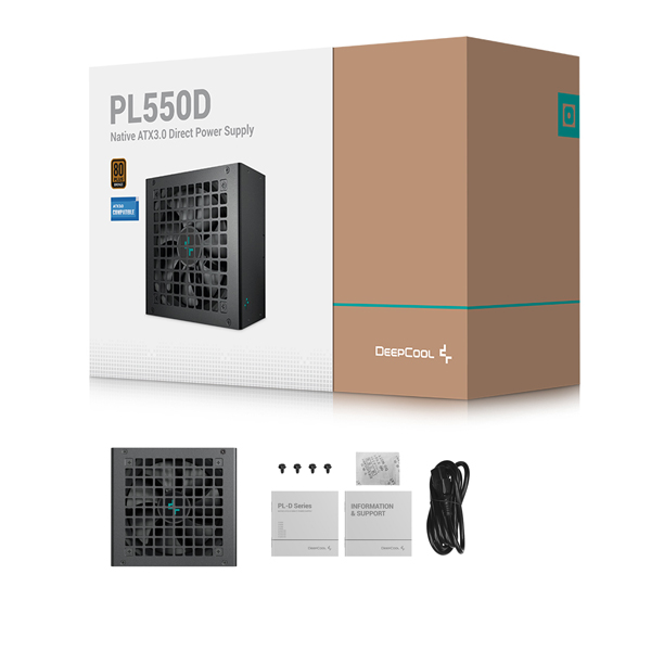 DeepCool PL550D 550W 80+ Bronze ATX 12V V3.0 Direct Cable Power Supply With 1X 12VHPWR Cable And Active PFC And 1X 120mm Hydro Bearing Fan - Black Colour