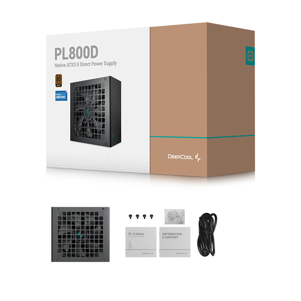 DeepCool PL800D 800W 80+ Bronze ATX 12V V3.0 Direct Cable Power Supply With 1X 12VHPWR Cable And Active PFC And 1X 120mm Hydro Bearing Fan - Black Colour