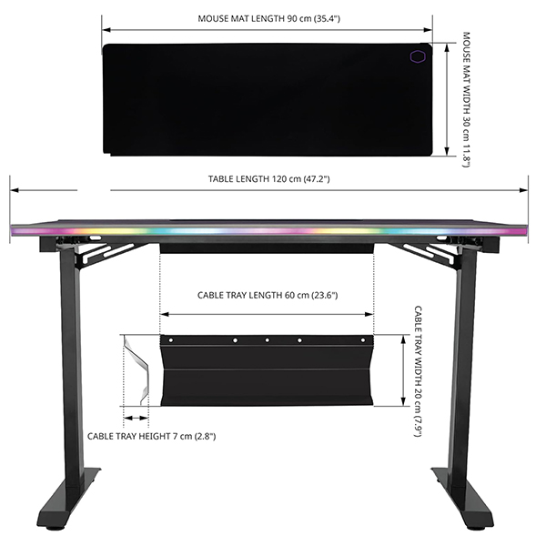 Cooler Master GD120 120CM ARGB Compact Ergonomic Gaming Desk Allowing ARGB Lighting Sychronization With MASTERPLUS+ APP And Built With Cable Management Tray And Up To 100KG (MAX) - Black Colour