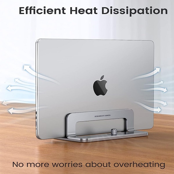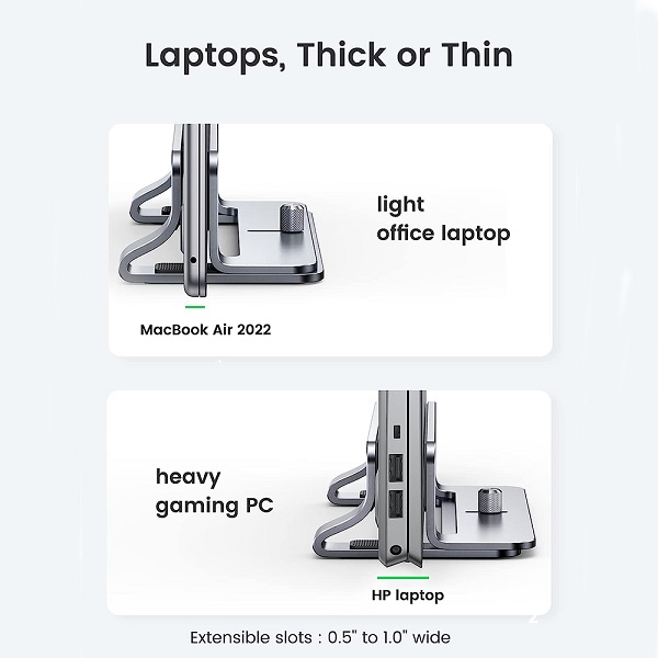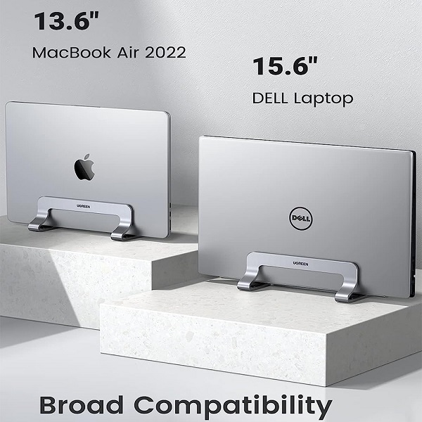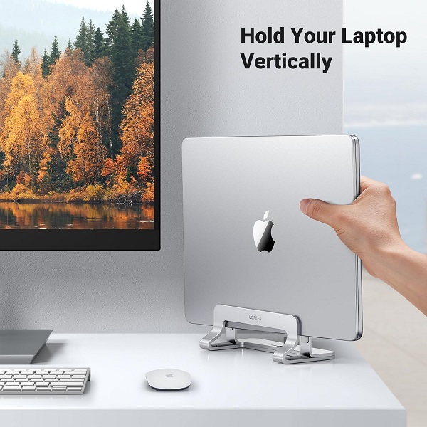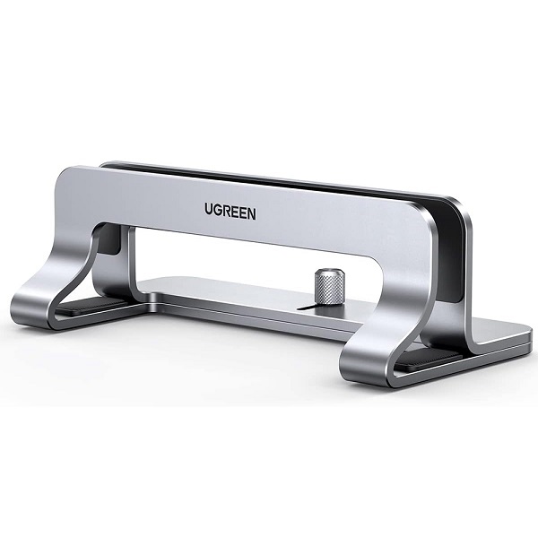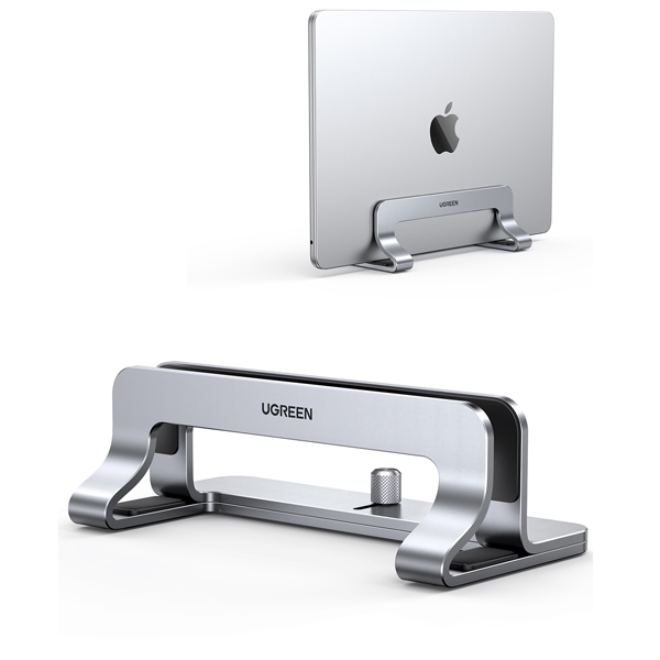 UGreen 20471 Universal Aluminium Alloy Vertical Laptop Stand Suitable For 12mm-26mm Laptop Width, Scratch Resistant And Optimize Desktop Space - Grey Colour