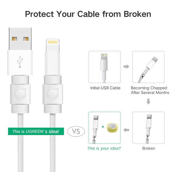 UGreen 40705 Mobile Cable Tail Protection Sleeve 6pcs With PVC ECO-Friendly Material And Best Suitable For Original IPhone Charger Cable - White Colour