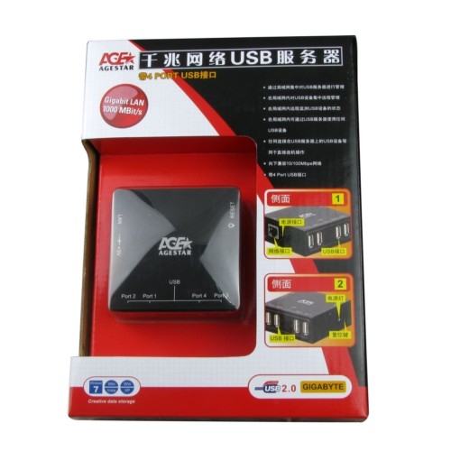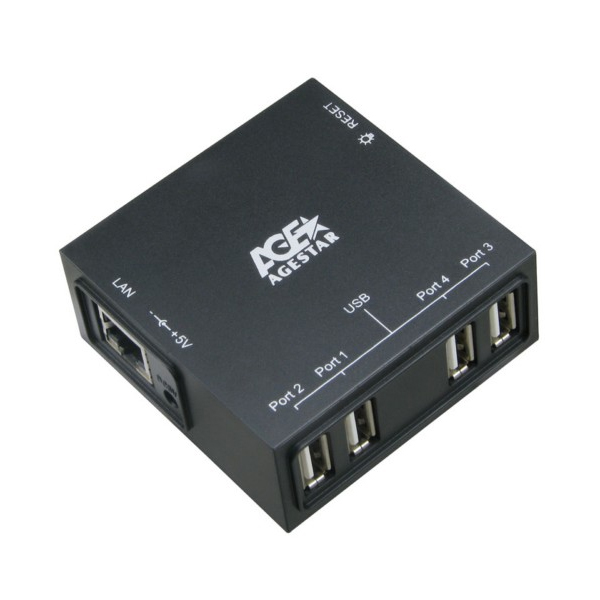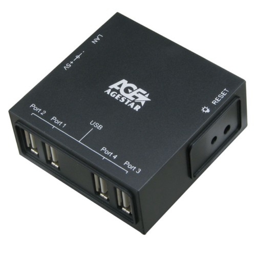 AgeStar 4-Port USB2.0 Networking Server Adapter With 1000Mbps Network Speed + Backwards Compatible With 100Mbps And Available For Any USB Device Via The USB Server - Black Colour