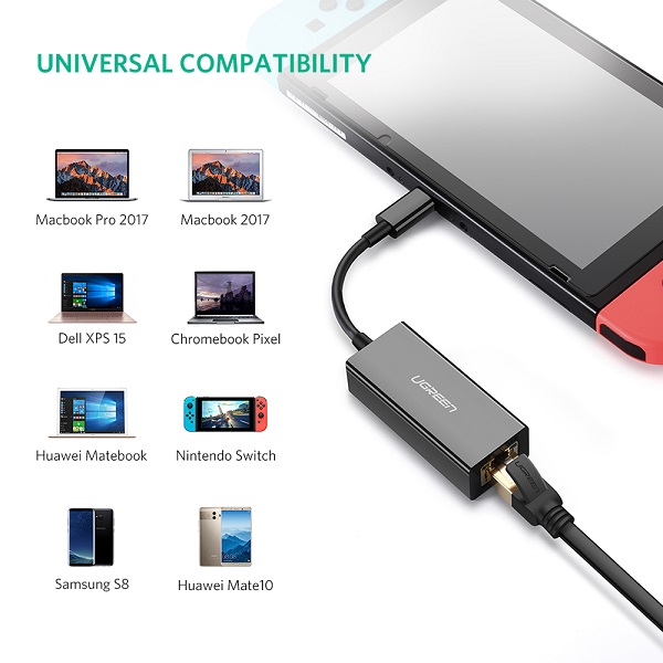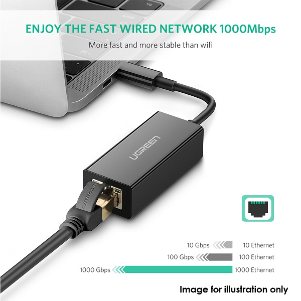 UGreen 50307 USB-C 3.1 Gen1 Male To RJ45 Gigabit Ethernet Female Adapter With Network Speed Of Up To 1Gbps And Widely Compatible With USB-C/Thunderbolt 3 Devices - Black Colour