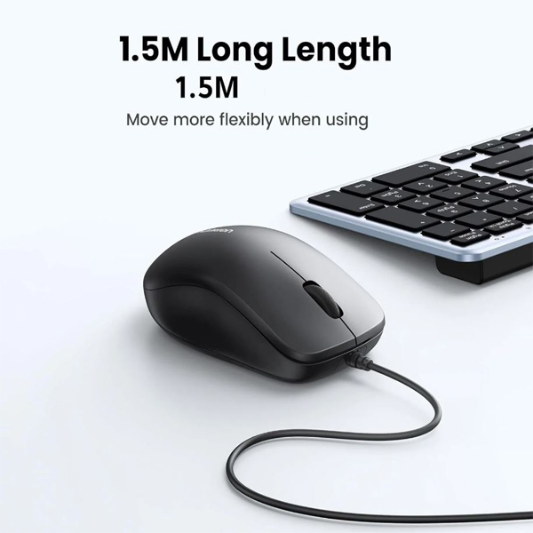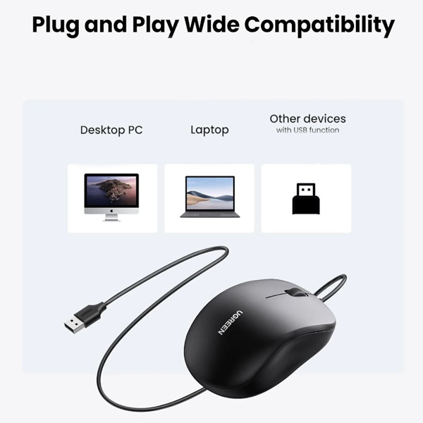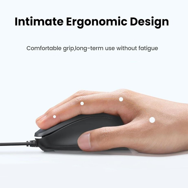 UGreen 90789 Ergonomic USB Wired Optical Mouse With 1200K DPI Sensor And Compatible With USB Devices - Black Colour