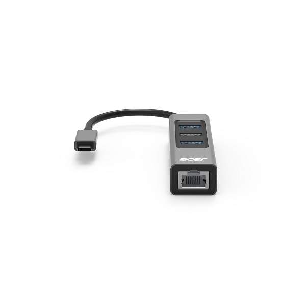 Acer ZL.DCK11.001 ODK3G0 USB-C 4-In-1 Mini Dock To Gigabit Ethernet Port And 3X USB3.2 Gen1 5Gbps With Optional USB-C Power Support - Grey Colour