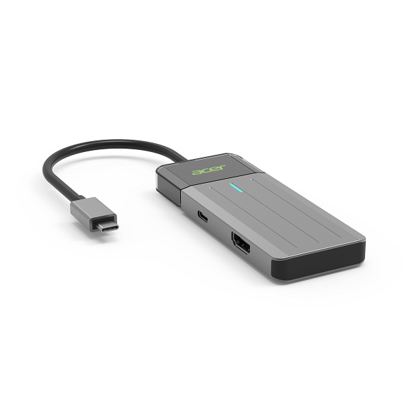 Acer ZL.DCK11.002 ODK3H0 USB-C 5-In-1 Mini Dock With 3X USB3.2 Gen1 5Gbps, HDMI 4K@60Hz And USB-C 100W (Max) Power Delivery - Grey Colour