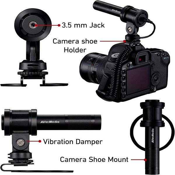 AVerMedia AM133 Live Streamer Uni-Directional 3.5MM Microphone With Windscreen And Stand - Black Colour