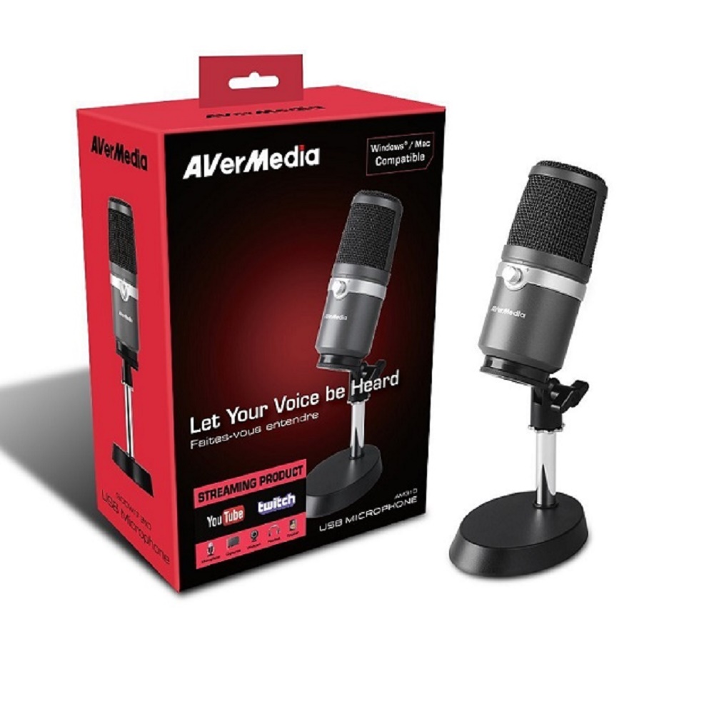 AVerMedia AM310 is a plug and play USB microphone that lets you record high quality sound. AVerMedia AM310 is designed for music performers and live streamers. Built-in cardioid condenser records sound sources that are directly in front of the microphone, delivering detail, accurate sound.