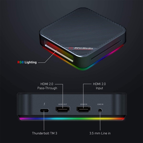 AVerMedia GC555 Live Gamer Bolt 4K@60Fps Capture Card With Ultra Low Latency And Allows To Record 60FPS Of Pure 4K HDR And 7.1 Surround Sound Pass-Through - Black Colour