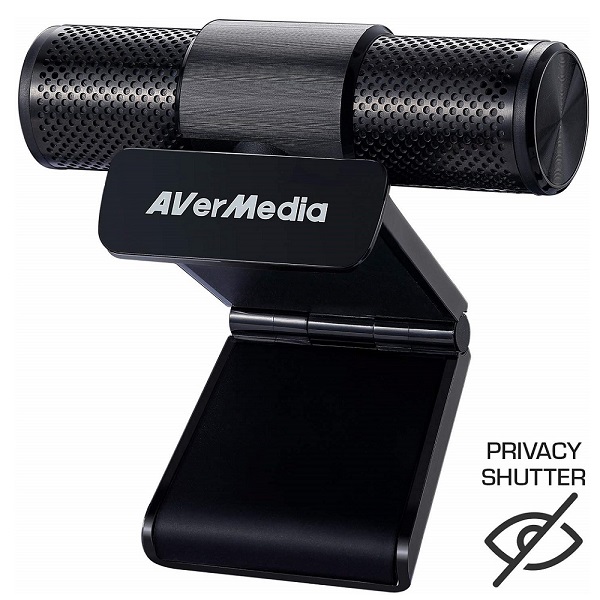 AVerMedia Live Streamer CAM 313 (PW313) USB Webcam With Full HD 1080P@30Hz Recordings And Swivel Tripod-Ready Design And Built-in Privacy Shutter - Black Colour