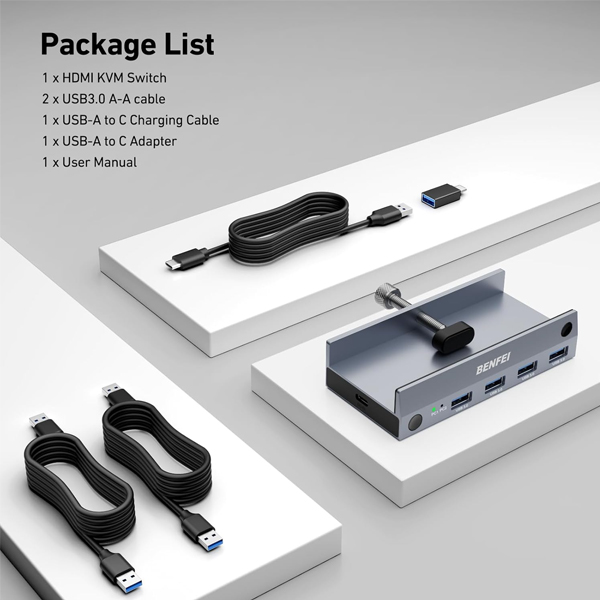BENFEI All-Aluminium 4-In 2-Out USB HDMI KVM Switch Supports High-Definition 8K@60Hz Resolution And Seamless Switch Between 2 PCs - Grey Colour