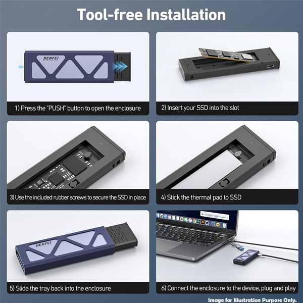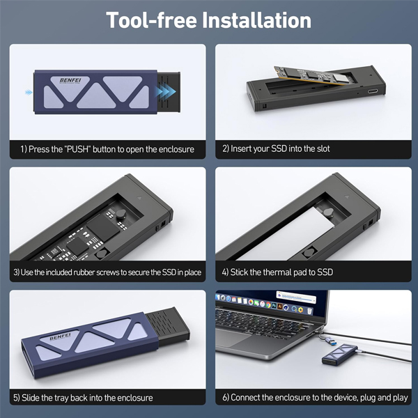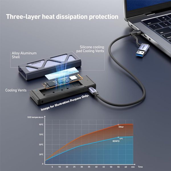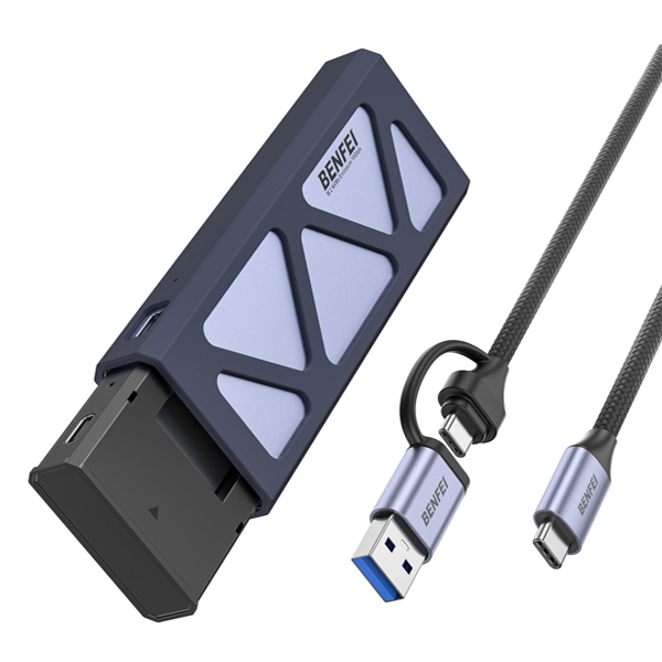 BENFEI USB-A / C 3.0 Gen2 10Gbps M.2 M-Key NVMe PCIe Solid State Drive External Enclosure With Aluminium Alloy Material And Enhanced UASP Supported - Grey Colour